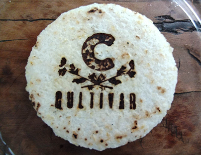 Puedes personalizar la figura de la arepa con el diseño de tu elección o la marca de tu logo en relieve al calor sobre la superficie de la arepa. También ambas opciones en la misma arepa.